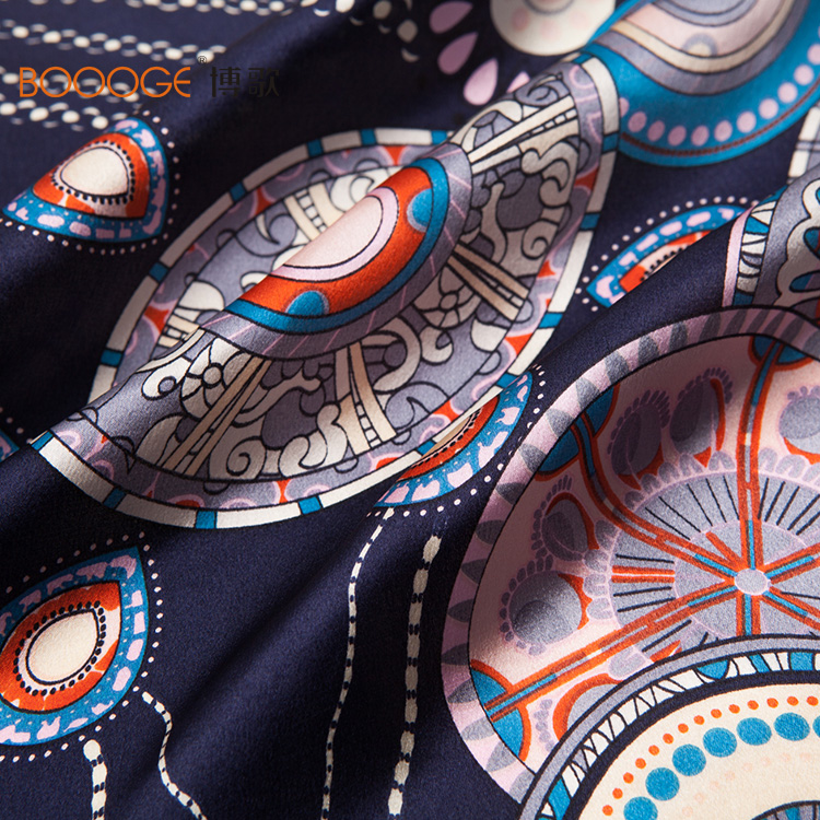 BOOOGE桑蚕丝素绉缎印花小方巾